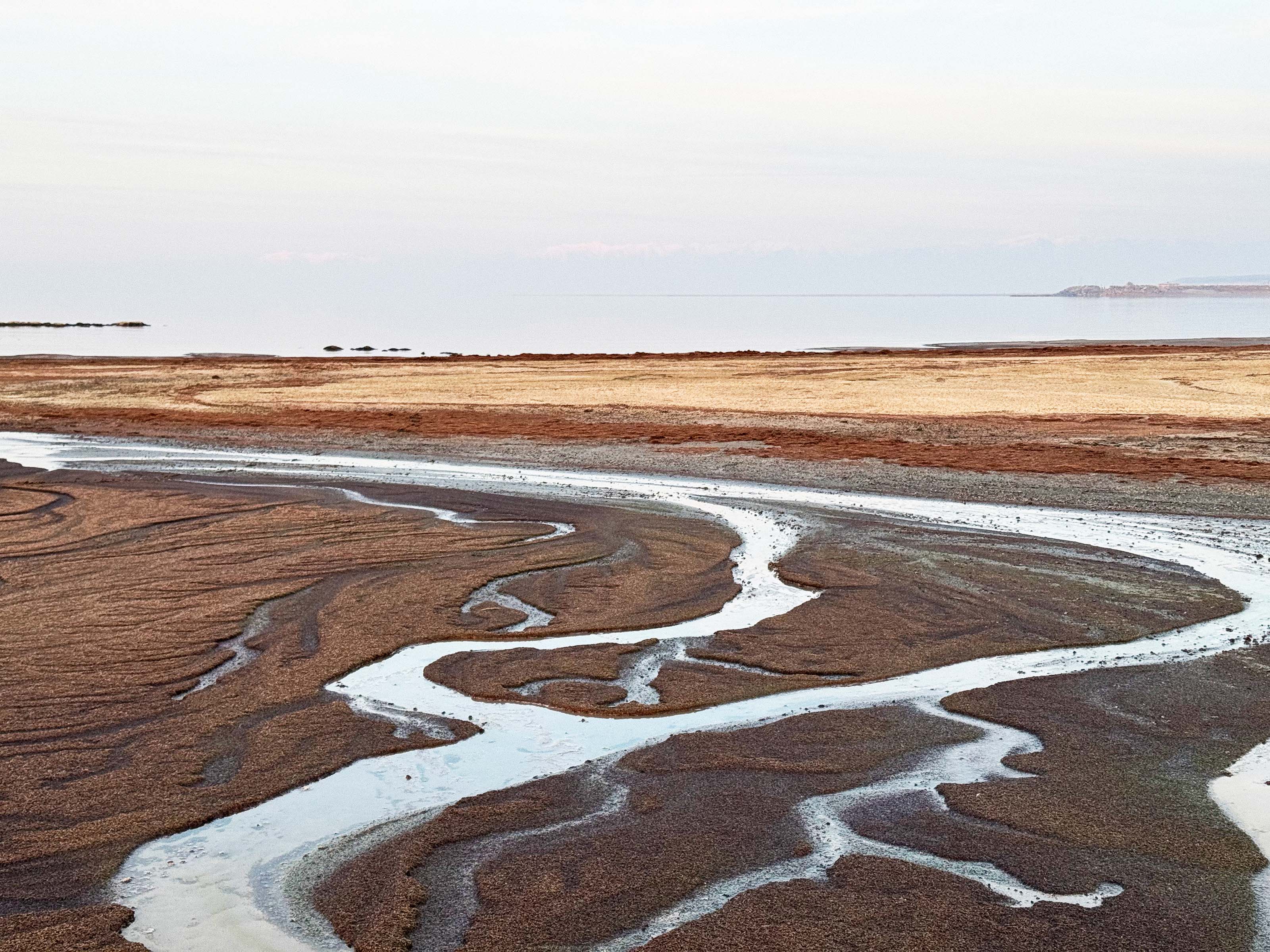 “The loss of the lake would be a tragedy of incalculable magnitude,” the artist says, and yet his images are characteristically minimalist; there is restraint in the simplicity, which he doubled down on in format. He chose to print them in a small, unspectacular size – “a visual whisper,” he calls it – about the width of his head. “The issue of our broken planet is so huge, and there is so much noise around it, that I didn’t want to keep yelling,” he explains. Rather, “it’s about forcing the audience to look very close. To come face to face with this tragedy.”