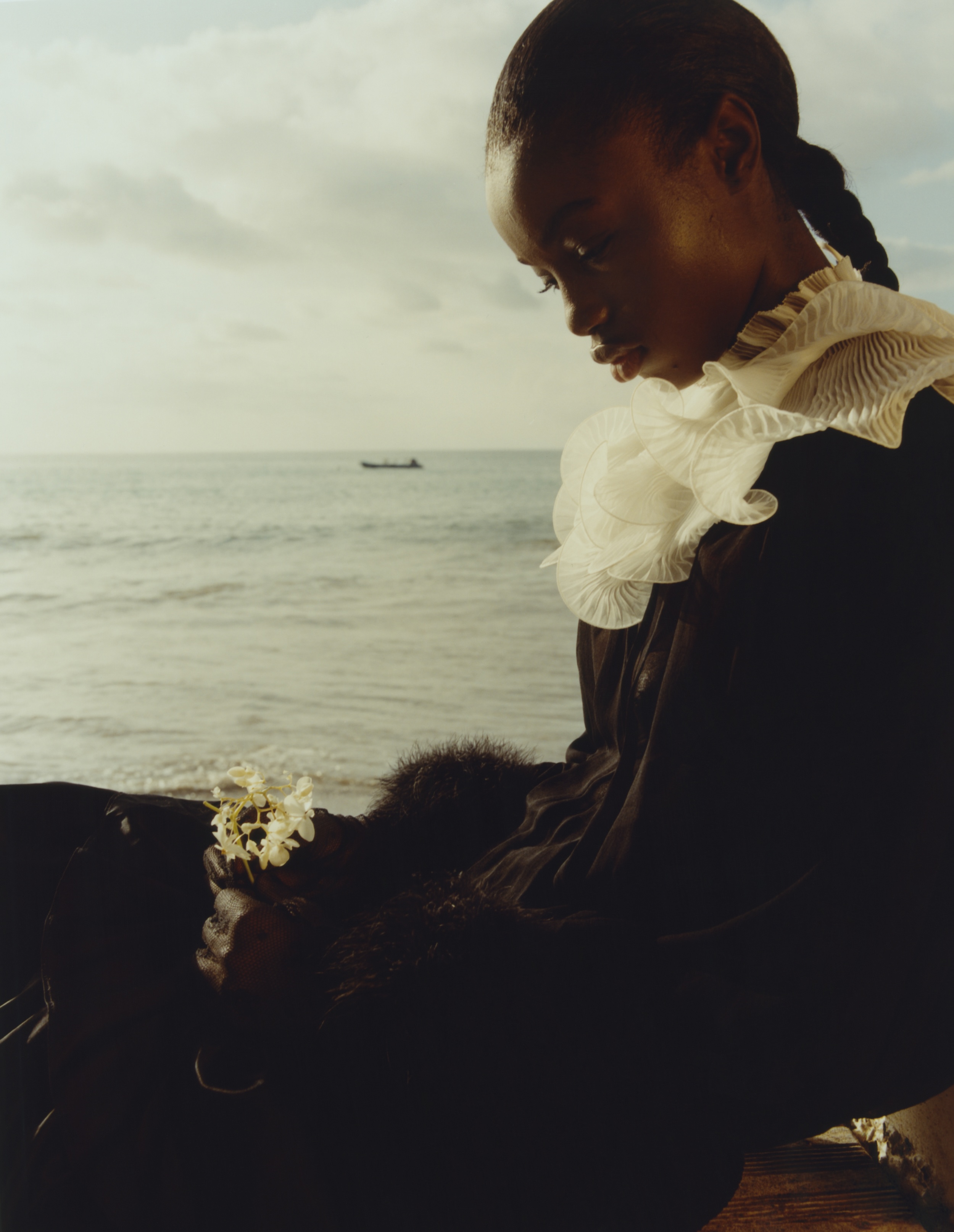 Movement has defined the Durimel blueprint and seems to continue to colour their visual worlds. Their subsequent move to Paris expanded their exploration of Black and African diasporas. “We were struck by the African presence in Paris,” says Jibril. “At first we thought we’d photograph the diaspora there, but after speaking to people we decided to go directly to Africa.” Travelling to Côte d’Ivoire and Senegal deepened their ongoing book project, Quiet as the Country (a working title), a long-term body of work that weaves portraiture, landscape, and costume into a fictional yet emotionally grounded world.