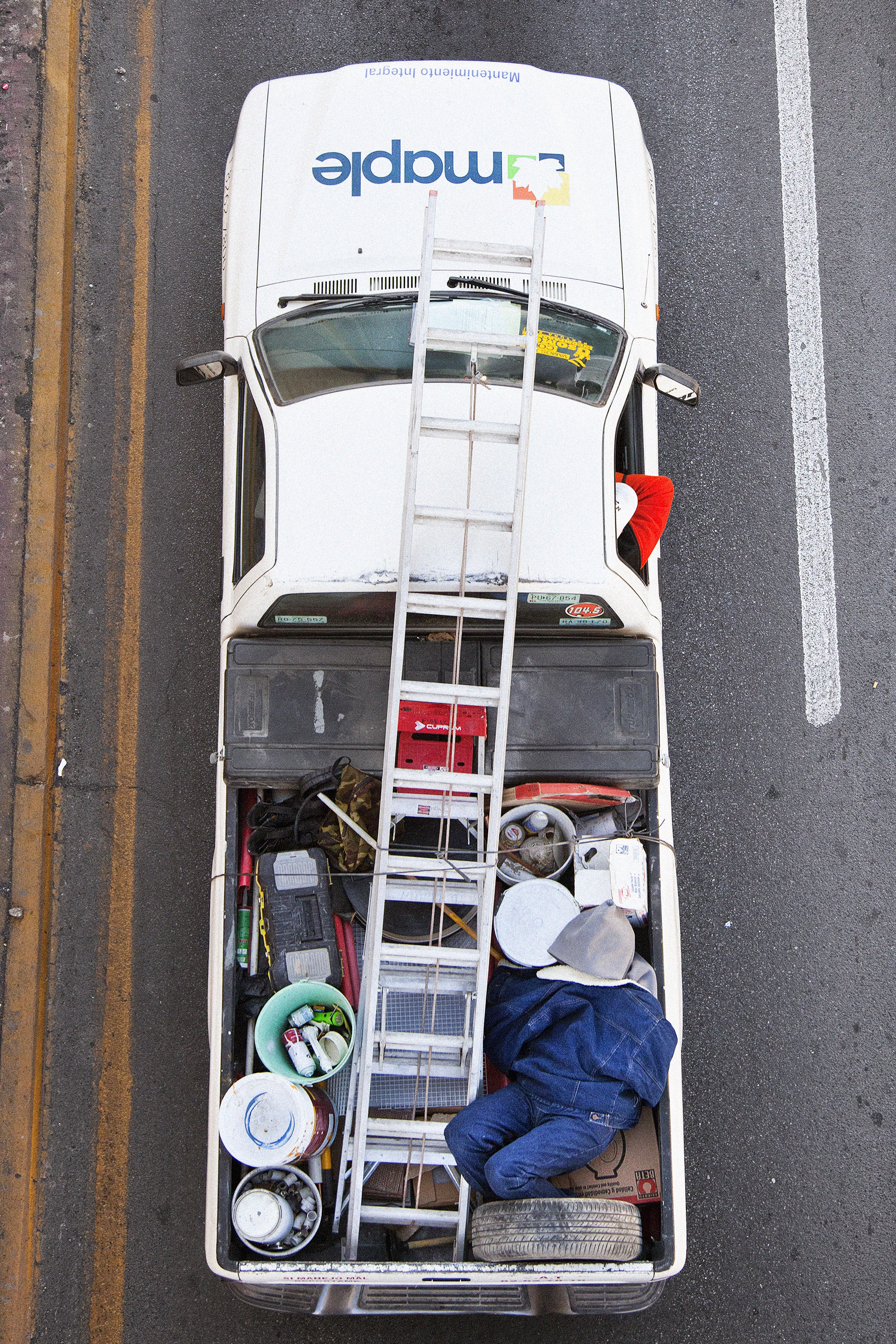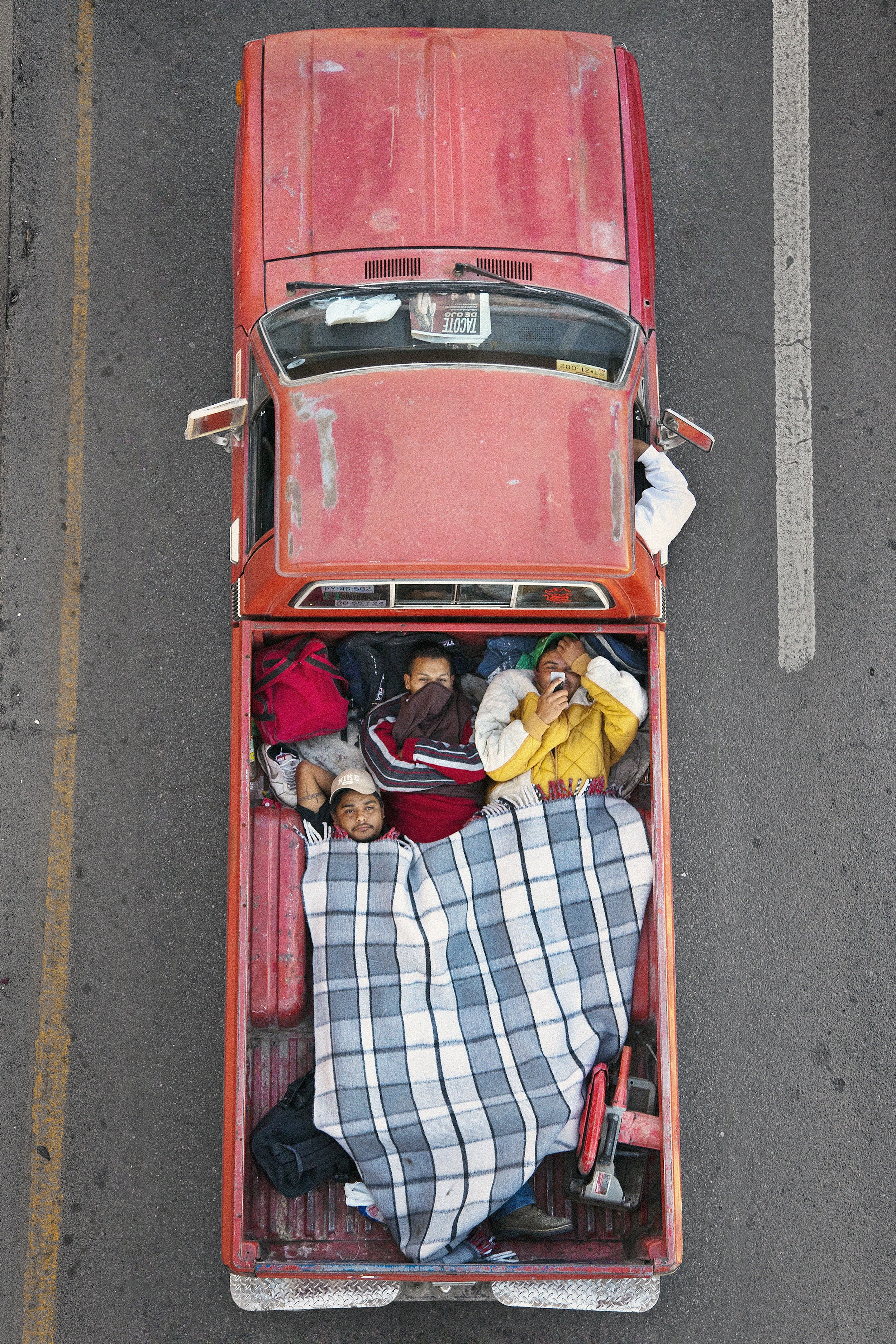 Several exhibitions consider the construction of housing as an architectural endeavour – where this goes right and where this goes wrong. Alejandro Cartagena’s exhibition in Palazzo Vizzani is an iteration of his Deutsche Börse-nominated book, A Small Guide to Home Ownership, on the effects of urban sprawl in northern Mexico. Images are hung from the ceiling so that visitors almost collide with them as they move through the rooms to represent the ever shifting nature of life in Latin America, Cartenaga says. Rows of identikit candy coloured buildings alongside pictures of residents carpooling – the only way to get around since transport infrastructure has not been fully considered. The work is adapted smartly, TVs showing American real estate ads standing in for the witty book design, which echoes a handbook, both hinting at US influence.
