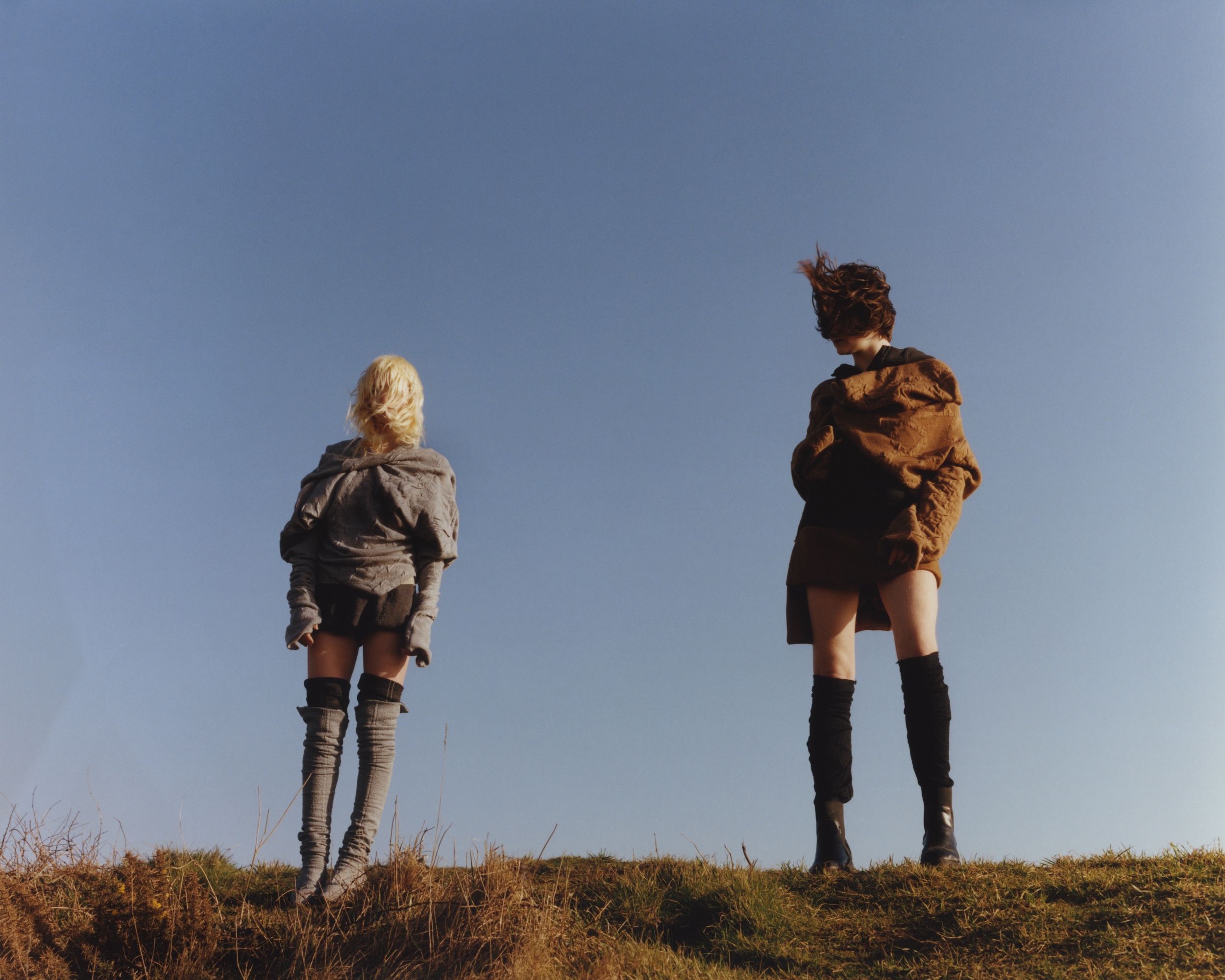 Many of Teller’s peers and successors studied at Central Saint Martins, a school whose alumni form a kind of visual genealogy of creative risk. Wolfgang Tillmans, Corinne Day, Rankin, Tim Walker, Harley Weir, Campbell Addy and many more have all reshaped how fashion is seen, transforming the genre and its legacy, and the artists in Conroy’s exhibition continue that lineage, but also turn the gaze inward. For instance, Camille Lemoine photographs friends and family in the Scottish countryside. In one image, a model lies outstretched on a narrow path, swallowed by long sun-bleached grass that surrounds her. The clothes are barely visible, and what remains is a feeling of solitude and breath. Carina Kehlet Schou constructs her images as meditations on nostalgia and identity, balancing the staged with the emotional. For Coco Wu, the act of photographing begins long before the shutter clicks. She street casts strangers, spending hours walking or talking with them before taking a single frame.