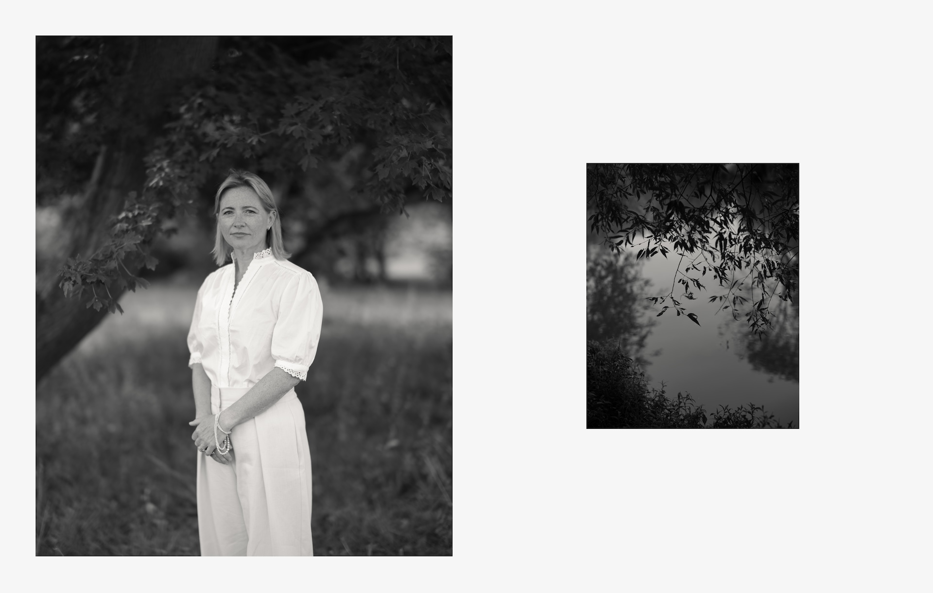 Responding to the commission theme, Catalysts, Tomlinson created a series of diptychs depicting six Oxford academics whose research shifts understanding in fields ranging from mental health to Islamic art, reproductive science and mathematical biology. Rather than meet her subjects in lecture halls or offices, she removed them from traditional academic settings and placed them in natural surroundings. “I wanted to photograph the subjects in more intimate and reflective moments,” she explains.