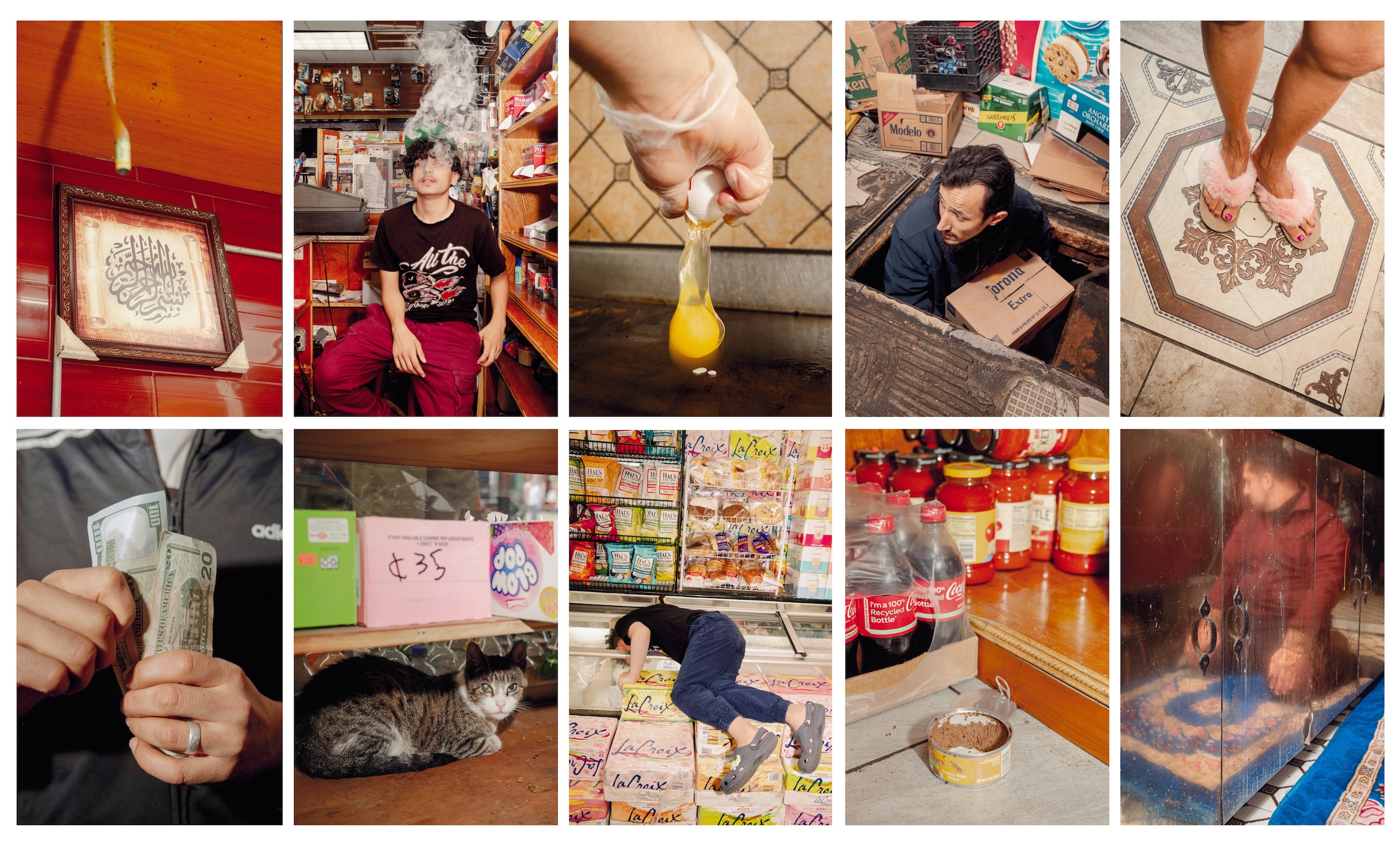 This celebratory tone is carried throughout the show to the photographic series by Mahka Eslami, Bodega Boys, highlighting moments of daily life and joy in Yemeni corner stores around New York City. Elsewhere in the exhibition, there are clips from In My Own Skin, which documents the aftermath of 9/11 as experienced by five young Arab women living in New York.