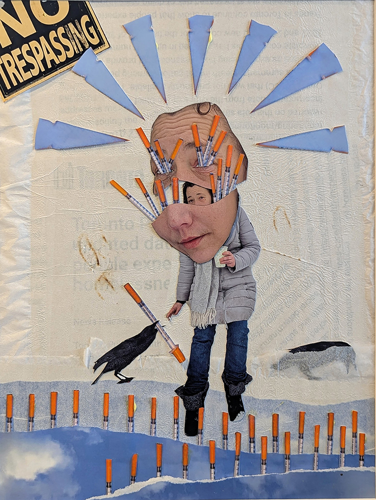 Ethics, diversity and social responsibility also guided Catherine Hawthorn throughout the course. In UnBroken: The Feminine Homeless, she examined one of society’s most visible, yet invisible, communities. Joining the course from Canada, she continued her long-term research into the experiences of homeless women living rough on the streets of Oshawa, Ontario. Over two years, she experimented with a mixed-media collage technique that disrupted the ‘one-dimensional’ portrayals of homelessness. By collaging and repainting each woman’s portrait, she presents a richer, more fractured image that better reflects their internal world. “This project was not about fixing or observing,” she writes, “but about witnessing, sharing space and listening.”