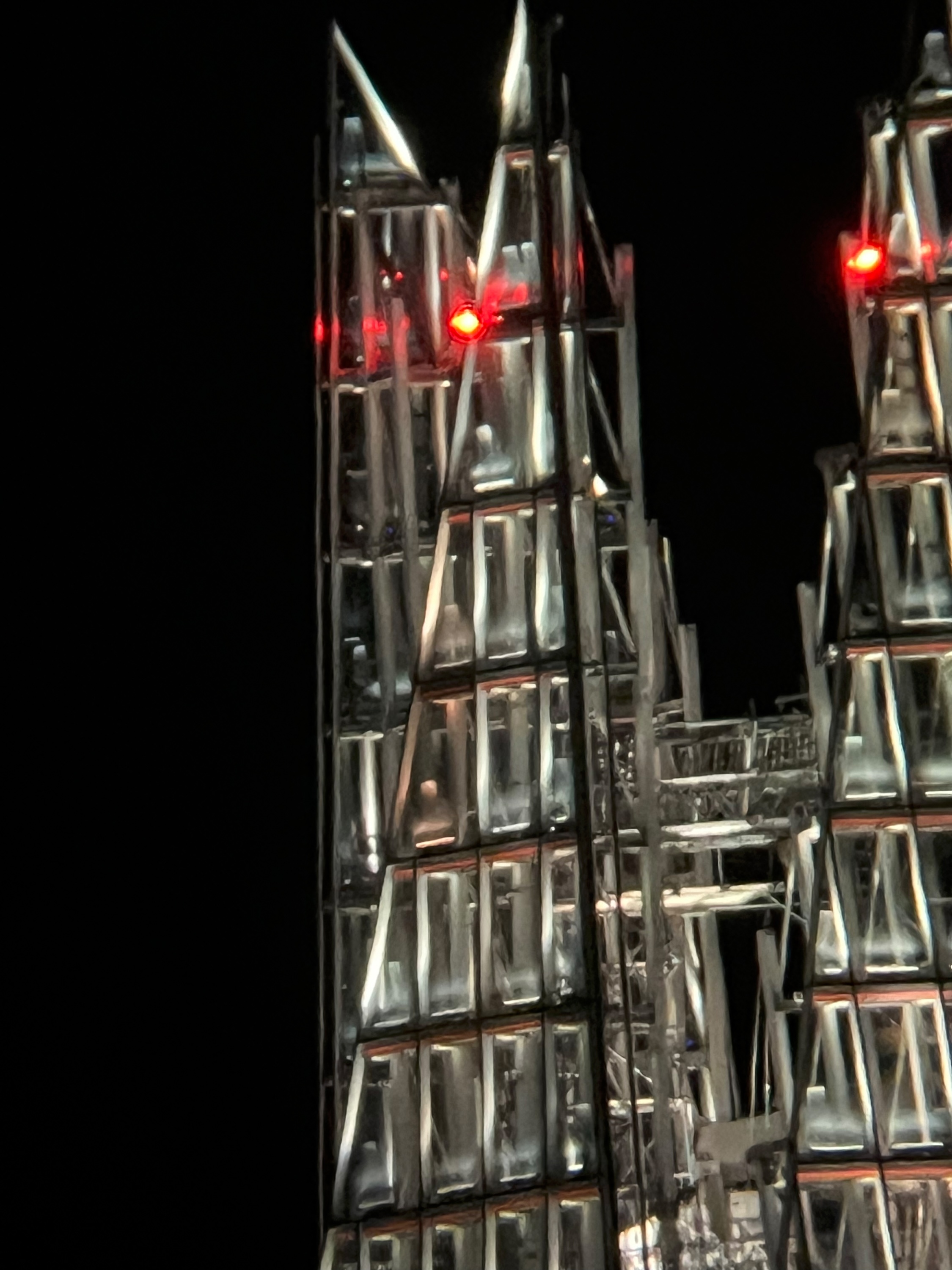 As Mollica’s comment suggests, Moon City feels edgy and even ominous, the pixellated images suggesting surveillance, and the views of the skies drones and the destruction of Ukraine and Iran. Shots of the structures that underpin office blocks – design elements at the top of The Shard, or scaffolding in construction projects – recall 9/11 and the Twin Towers’ mangled remains; a photograph of a chinook helicopter adds to the sense of foreboding, as does a dramatic shot of a plane and jet trail, surging across the sky or perhaps falling out of it. It’s a fever-dream vision of London made out of the everyday, with elements that we all often see, whether we consciously register them or not.
